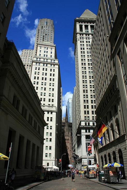 Questa strada è il simbolo mondiale del capitalismo americano. Si trova in pieno Financial District, con i classici uomini in giacca e cravatta che camminano in fretta perenne. L’edificio che ospita la Borsa (New York Stock Exchange) è davvero bello. All’inizio della via lungo la Broadway c’è la Trinity Church con un piccolo cimitero.